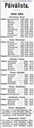 Tornio-Haaparanta Posti- ja henkilöjuna aikataulu vuodelta 1928 >> Tässä kuva linkki