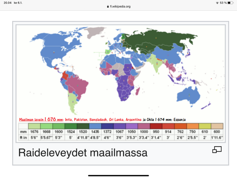 1435 mm on mm. Eurooppalainen raideleveys (?)